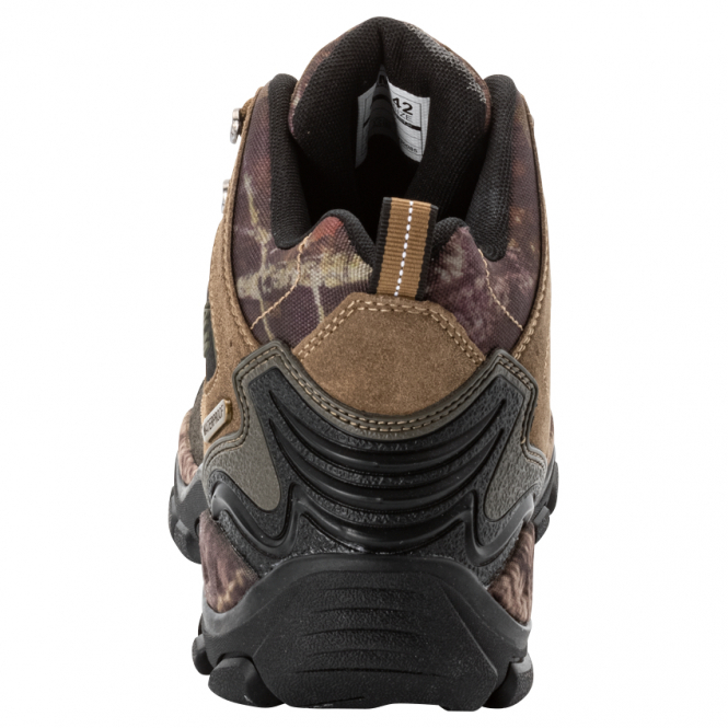 Knöchelhoher robuster Schuh mit Camoudesign. Optimales Profil für sicheren Stand und Halt bei unebenem Boden. Durch die Almtex® Membran ist der Schuh wasserdicht und atmungsaktiv, was Ihn als ein Must Have Artikel für jeden Angler macht. Das bedeutet, dass der Fuß weder von außen noch von innen nass wird. Er bietet hohen Komfort und Schutz bei Wind und Wetter. Für den leichten Einstieg hat der Stiefel eine Schlaufe auf der Rückseite. Die Profilsohle ist bestens für unwegsames Gelände geeignet. Farbe: braun mit Camou Einsätzen.