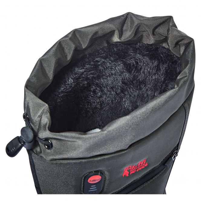 Bieten mit drei Heizstufen (40 °C, 50 °C, 60 °C) gleichmäßige Wärme auf Knopfdruck. Weiches Plüschfutter, verdeckte Batterietasche, Kordelzug am Schaft und Klettverschluss am Knöchel sorgen für Komfort, Halt und Kälteschutz. Lieferumfang: 2x Akku 7,4 Volt 3000 mAh, 1x USB-C-Ladekabel. Farbe: olive/schwarz.
