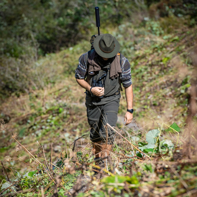 Filzhut aus reiner Wolle. Mit einer 6,5 cm breiten Krempe. Farbe: oliv.