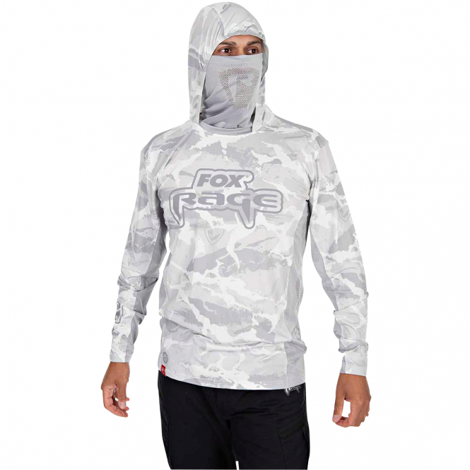 Hergestellt aus leichtem, atmungsaktivem Material. Das helle Camouflage-Design reflektiert die Sonnenstrahlen. UPF50-zertifiziertes Material. Mit belüfteten Seiteneinsätzen mit „R Shield”-Logo für verbesserte Luftzirkulation. Die elastische Kapuze bietet sicheren Schutz des gesamten Kopfes vor der Sonne, einschließlich Ohren und Nacken.