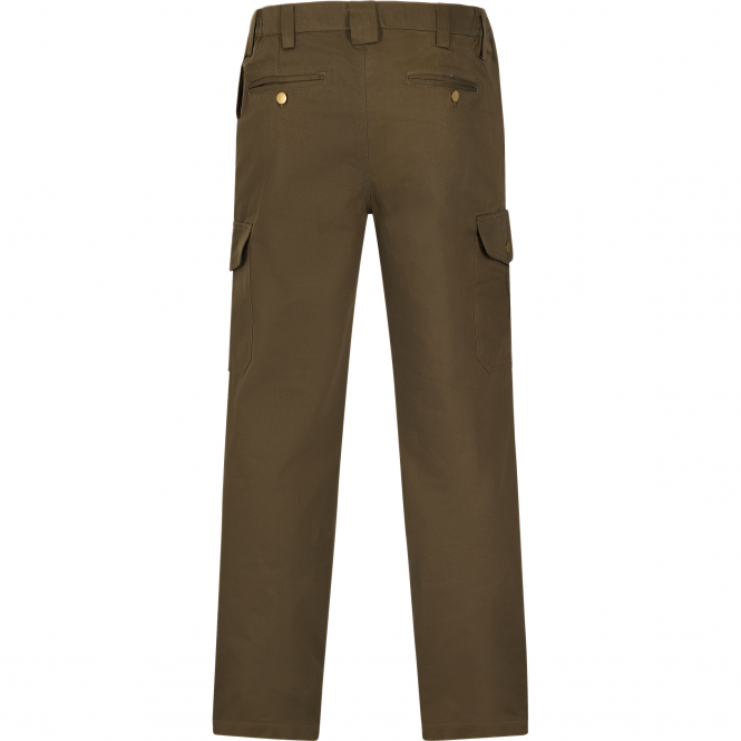 Jagdhose im Moleskin-Stil mit 2 Flügeltaschen, 2 Blasebalg-, 1 Klappmessertasche und 2 Gesäßtaschen mit Knopf. Das Innenfutter wurde aus besonders weichem und dadurch angenehm zu tragendem Baumwollgewebe gefertigt. Bund mit 2 seitlichen Gummizugeinsätzen und Gürtelschlaufen. Farbe: grün.