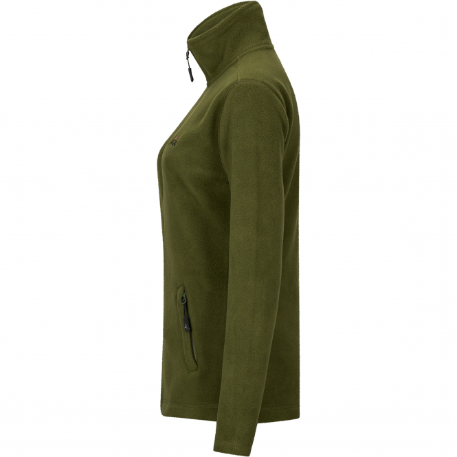 Elegante, auf Taille geschnittene Fleecejacke für Outdoorfans. Warm und angenehm weich mit zwei Reißverschlusstaschen. Farbe: olivgrün.