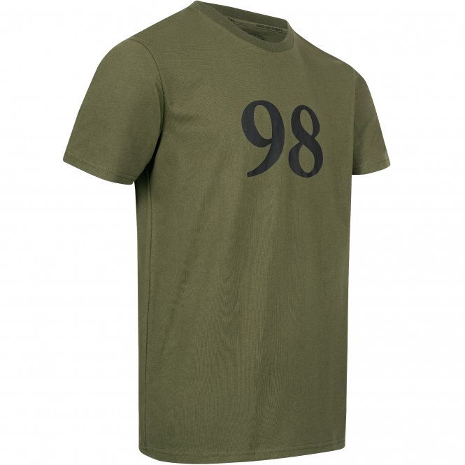 T-Shirt mit großem „98“ Frontaufdruck und dezentem Schriftzug „125 Jahre MAUSER 98“ auf der Rückseite. Mit Rundhals-Ausschnitt und angenehmem Material für hohen Tragekomfort. Farbe: oliv.