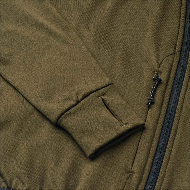 Ideal als wärmeisolierende Zwischenschicht unter der Shell-Jacke. Extrem geräuscharm und flexibel. Mit großer Anoraktasche auf der Vorderseite und 2 Handtaschen. Mit asymmetrischem Reißverschluss. Farbe: grün.